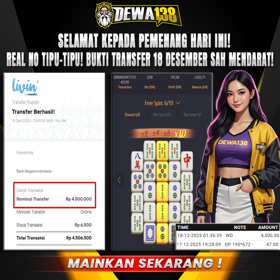 Cek sendiri DEWA138 tempat game jackpot dalam waktu singkat cuma di sini depo 47k bisa withdraw 4,5 juta Sudah di kasih bukti bukan janji yakin ga main?Rugi Dong!